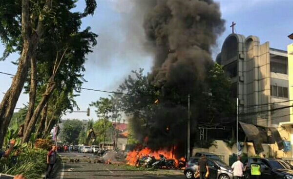 برطانوی نشریاتی ادارے کی رپورٹ کے مطابق 13 مئی 2018 اتوار کے روز تقریبا صبح ساڑھے سات بجے کے قریب انڈونشیا کے تین چرچز میں مختصر وقفے کے بعد دھماکوں میں 13 افراد شہید اور 62 زخمی ہوے جن میں 2 پولیس اہلکار بھی شامل ہیں رپورٹ میں بتایا گیا کہ دھماکے سانتاماریہ کیتھولک چرچ ۔ انڈونیشین کرسچن چرچ ۔ اور پینٹی کوسٹ سینٹرل چرچ میں ہوے پولیس ترجمان کے مطابق سینٹ ماریہ چرچ میں ہونے والے دھماکے میں 6 افراد شہید ہوے ہیں جبکہ دیگر مسیحی عبادت گاہوں میں ہونے والے دھماکوں میں تین تین افراد شہید ہوے ہیں ان کا کہنا تھا کہ دھماکوں میں زخمی ہونے والوں میں سے ایک شخص دوران علاج ہسپتال میں شہادت پا گیا
