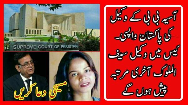 تفصیلات کے مطابق سپریم کورٹ نے آسیہ بی بی کی بریت کے خلاف اپیل 29 جنوری کو سماعت کیلئے مقرر کر دی تھی ، جس کی سماعت چیف جسٹس آصف سعید کھوسہ کی سربراہی میں تین رکنی بینچ کرے گا ۔ اپیل کی سماعت میں آسیہ بی بی کے وکیل کے طور پر سیف الملوک آخری مرتبہ پیش ہو ں گے ۔