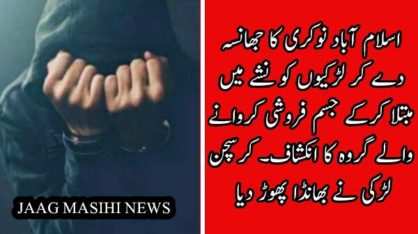 اسلام آباد (جاگ مسیحی نیوز ۔ 15 فروری 2019ء) : وفاقی دارالحکومت کے پوش سیکٹرز میں لڑکیوں کو محبت اور آئس نشے کا عادی بنا کر ان سے جسم فروشی کروائے جانے کا انکشاف ہوا ہے۔