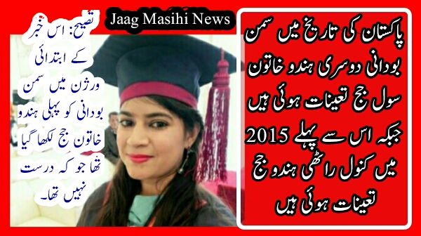 تصیح: اس خبر کے ابتدائی ورژن میں سمن بودانی کو پہلی ہندو خاتون جج لکھا گیا تھا جو کہ درست نہیں تھا۔