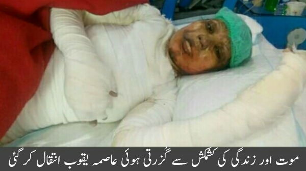 مسیحی لڑکی عاصمہ یقوب زخموں کی تاب نہ لاتے ھوے ہسپتال میں آج انتقال کر گئی