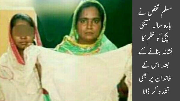 مسلم شخص کا بارہ سالہ مسیحی بچی کے ساتھ انتہائی غلط حرکات اور تشدد